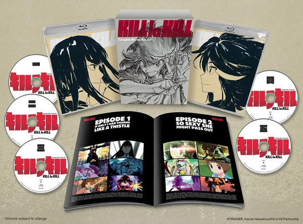 KILL la KILL Complete Box Set contains episodes 1-24 and the unaired episode #25 of the anime directed by Hiroyuki Imaishi plus a Booklet.