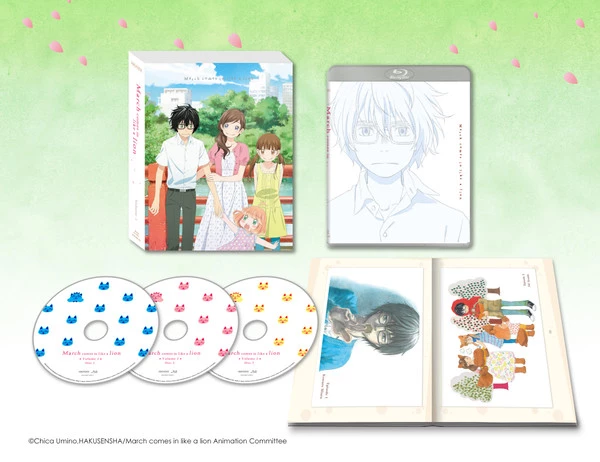 March Comes In like a Lion volume 1 contains episodes 1-11 of the anime directed by Kenjirō Okada & Digest plus a deluxe booklet, rigid box with package illustrated by Nobuhiro Sugiyama.*