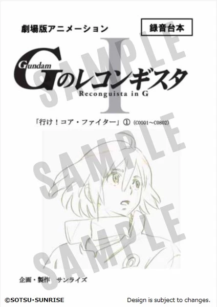 Gundam Reconguista in G Movie Part 1: Go, Core Fighter contains the anime directed by Yoshiyuki Tomino, and is housed in a storage box featuring art by animation director Ikuro Kuwana and inner jacket art by mechanical designer Ippei Gyobu. It also includes a 16 page booklet in Japanese and English, mecha description guide, storyboard book, and 2 books of dubbing scripts.