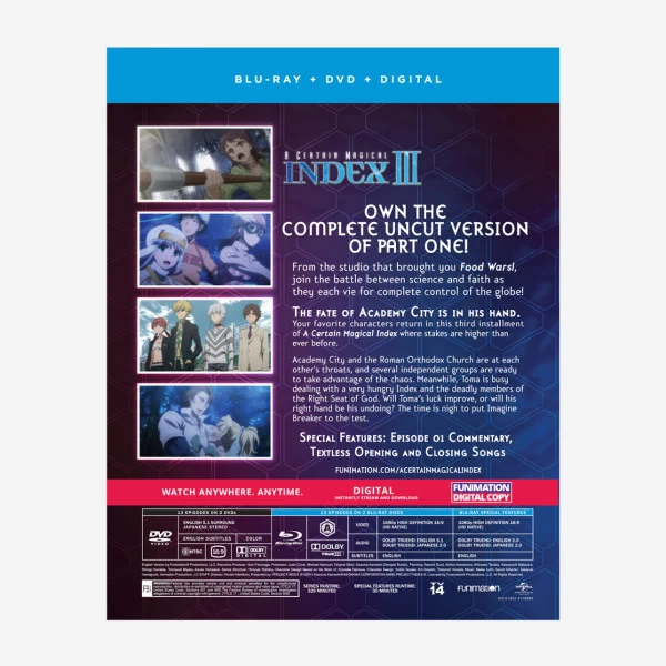 A Certain Magical Index Season 3 Part 1 contains episodes 1-13 of the anime directed by Hiroshi Nishikiori.