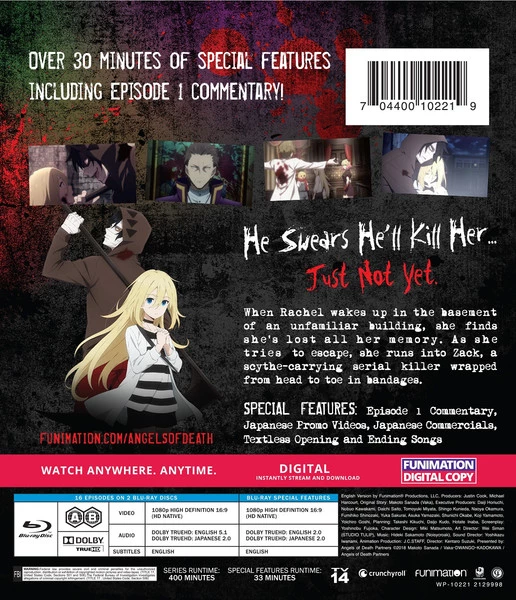 Angels of Death Essentials contains episodes 1-16 of the anime directed by Kentaro Suzuki.