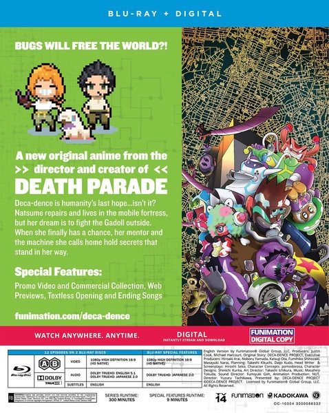 Deca-dence is humanity’s last hope …isn’t it? Natsume repairs and lives in the mobile fortress, but her dream is to fight the Gadoll outside. When she finally has a chance, her mentor and the machine she calls home hold secrets that stand in her way.