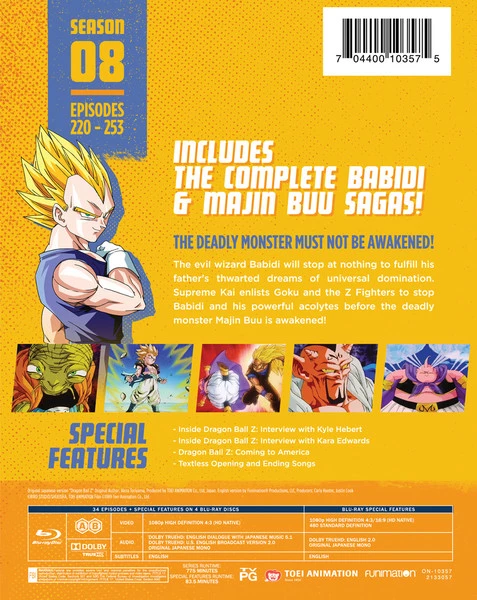 Special Features: Inside Dragon Ball Z: Interviews with Kyle Hebert and Kara Edwards, Dragon Ball Z: Coming to America, Textless Opening and Ending Songs.