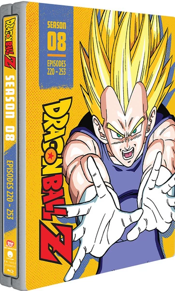 Dragon Ball Z Season 8 Steelbook contains episodes 220-253 of the anime directed by Daisuke Nishio and Shigeyasu Yamauchi, presented in a 4:3 aspect ratio and housed in a steelbook case.