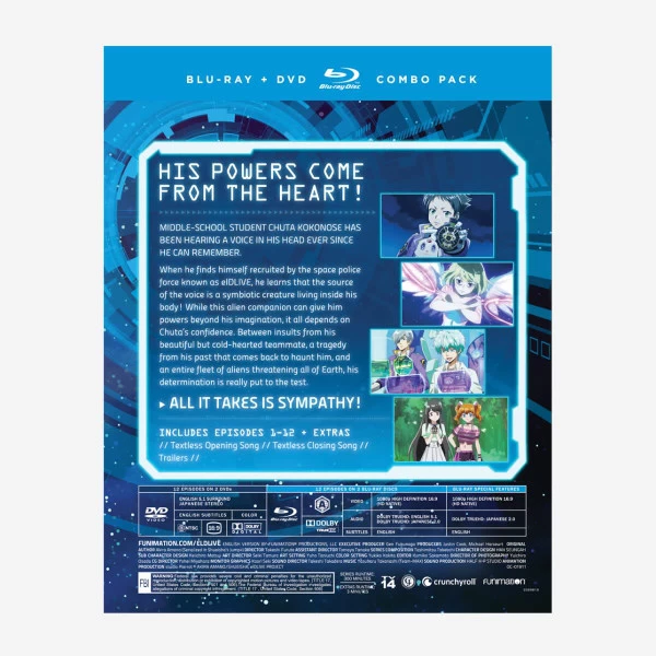 Middle-school student Chuta Kokonose has been hearing a voice in his head ever since he can remember. When he finds himself recruited by the space police force known as elDLIVE, he learns that the source of the voice is a symbiotic creature living inside his body! Now it’s up to Chuta to prove his mettle and defend the world alongside his newfound friends.