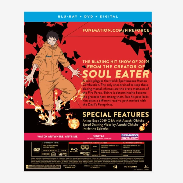 Special Features: Fire Force: Interview with Atsushi Ohkubo at Anime Expo 2019, Fire Force: Atsushi Ohkubo Speed Drawing at Anime Expo 2019, Fire Force Inside the Episode, Textless Songs