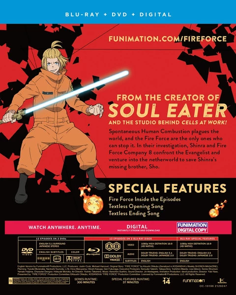 Special Features: Fire Force Inside the Episode, Episode 16, Episode 20, Episode 24, Textless Opening Song, and Textless Closing Song.
