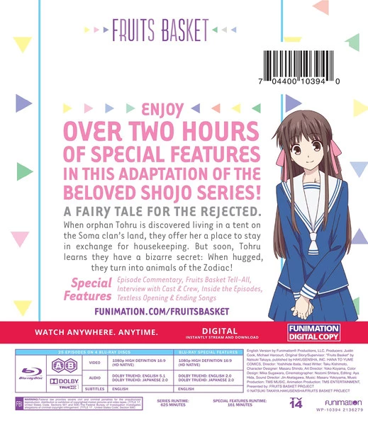 Special Features: Episode 4, 7 and 18 Commentaries, Fruits Basket Tell-All, Fruits Basket: Inside the Episode, Textless Opening and Closing Songs, Fruits Basket: Interview with Cast and Crew.