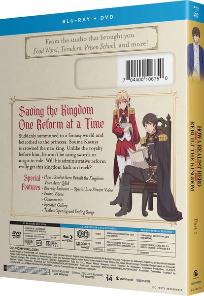 How a Realist Hero Rebuilt the Kingdom Part 1 contains episodes 1-13 of the anime directed by Takashi Watanabe.