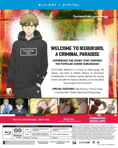 Ikebukuro West Gate Park contains episodes 1-12 of the anime directed by Tomoaki Koshida.