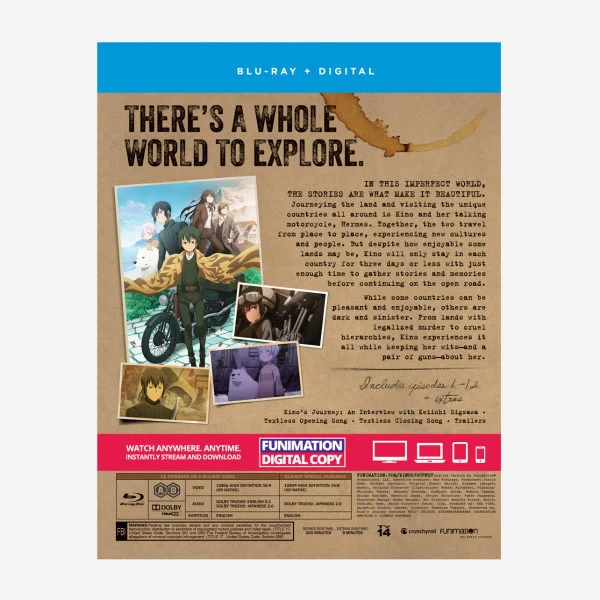 Kino’s Journey -the Beautiful World contains episodes 1-12 of the anime directed by Tomohisa Taguchi.