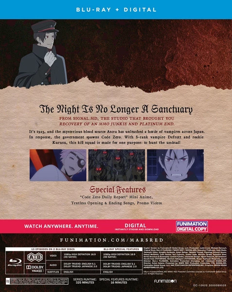 Itβs 1923, and the mysterious blood source Ascra has unleashed a horde of vampires across Japan. In response, the government spawns Code Zero. With S-rank vampire Defrott and the rookie Kurusu, this kill squad is made for one reason: to hunt the undead!