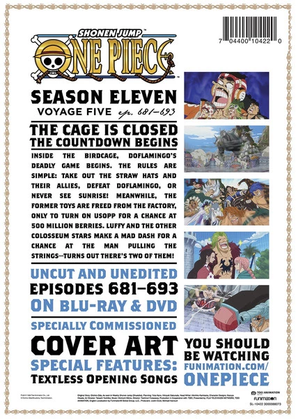 One Piece Season 11 Part 5 contains episodes 681-693 of the anime directed by Toshinori Fukazawa.