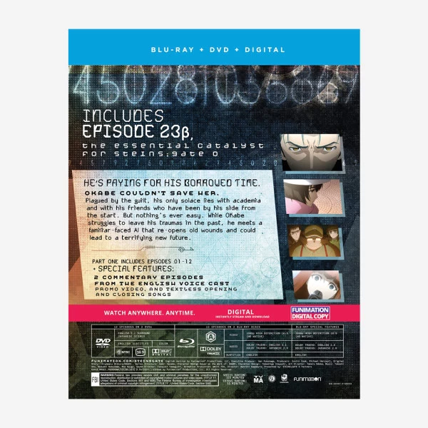 Steins;Gate 0 Part 1 features anime episodes 1-12 and 23ß directed by Kenichi Kawamura.