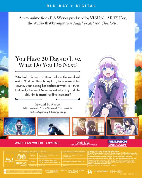 Yota had a future until Hina declares the world will end in 30 days. Though skeptical, he wonders of her divinity upon seeing her abilities at work. Is it true? Is it really the end? More importantly, why did she pick him to spend her final moments?