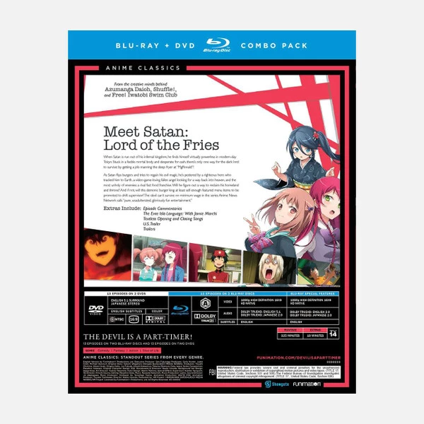 The Devil is a Part-Timer Season 1 Anime Classics Blu-ray/DVD contains episodes 1-13 of the anime directed by Naoto Hosoda.