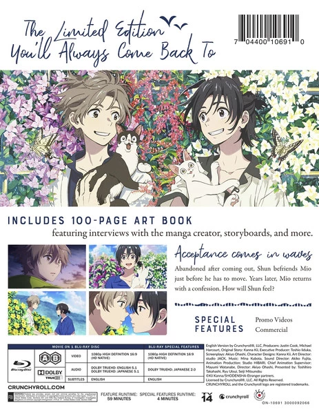 The Stranger by the Shore Limited Edition contains the animated film directed by Akiyo Ohashi, along with a 100-page art book featuring interviews with the manga creator, storyboards, and more.