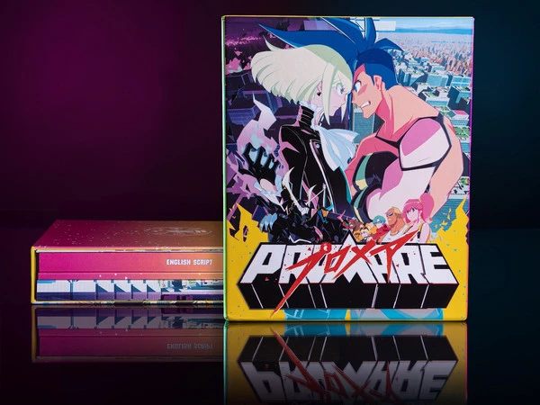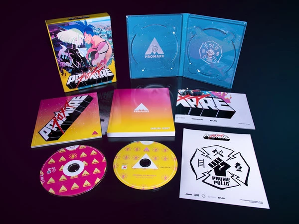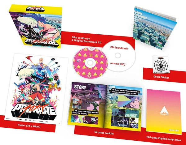 Promare Collector’s Edition is an anime film directed by Hiroyuki Imaishi of Studio Trigger and includes a CD soundtrack; 52-page booklet which includes interviews, character profiles, and artwork; English souvenir script (Over 120 pages!); mini poster; and decal sticker all housed in a rigid case.