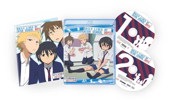 Daily Lives of High School Boys complete series set contains episodes 1-12 of the anime directed by Shinji Takamatsu and a story guide leaflet.
