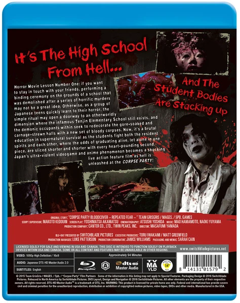 Now, it’s a brutal education in supernatural survival as the students fight both the resident spirits and each other, where the odds of graduating alive, let alone in one piece, are sliced shorter and shorter with every heart-pounding second. Japan’s ultra-violent videogame and anime phenomenon becomes a shocking live action feature film as hell is unleashed at the CORPSE PARTY!