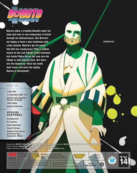 Boruto: Naruto Next Generations Set 14: Kawaki contains episodes 190-210 of the anime directed by Noriyuki Abe from Studio Pierrot.
