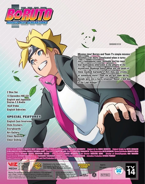 Boruto: Naruto Next Generations Set 4 contains anime episodes 40-52 directed by Noriyuki Abe from Studio Pierrot.