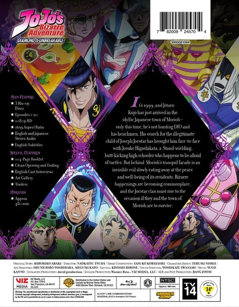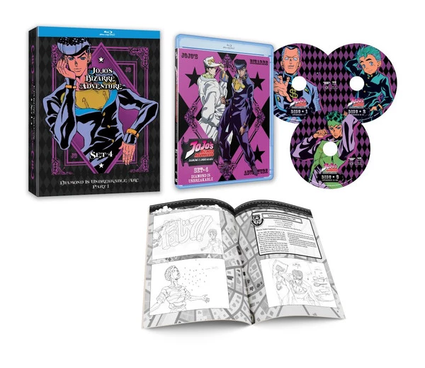 JoJo’s Bizarre Adventure Set 4: Diamond is Unbreakable Part 1 Limited Edition contains episodes 1-20 of the anime directed by Naokatsu Tsuda and includes a 104-Page Booklet.