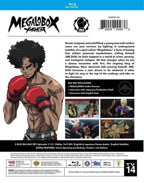 Special Features: Megalobox Audio Drama, Interview with Japanese Production Staff, Interview with English Cast, Clean Opening and Ending, Trailers and Art Gallery