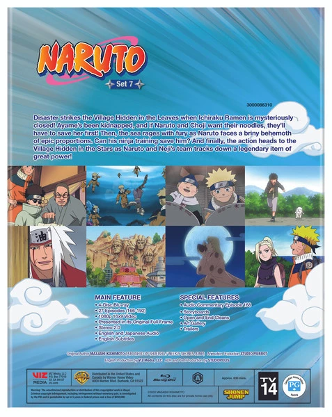 Disaster strikes the Village Hidden in the Leaves when Ichiraku Ramen is mysteriously closed! Ayame’s been kidnapped, and if Naruto and Choji want their noodles, they’ll have to save her first! Then, the sea rages with fury as Naruto faces a briny behemoth of epic proportions. Can his ninja training save him? And finally, the action heads to the Village Hidden in the Stars as Naruto and Neji’s team tracks down a legendary item of great power!