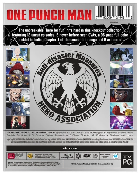 One-Punch Man Season 1 contains episodes 1-12 of the anime directed by Shingo Natsume, plus 6 OVAs.