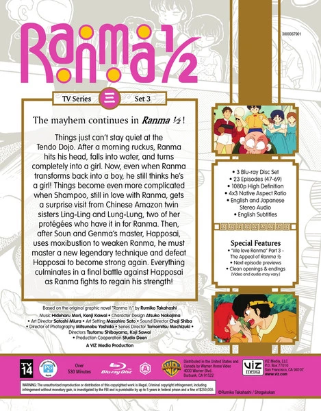 Ranma 1/2 Set 3 Standard Edition contains episodes 47-69 of the anime directed by Koji Sawai.