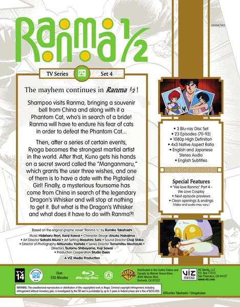 Ranma 1/2 Set 4 Standard Edition contains episodes 70-92 of the anime directed by Koji Sawai.
