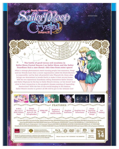 The battle of good versus evil escalates in Sailor Moon Crystal Season 3 as Sailor Moon and the Sailor Guardians face a new threat—this time from outer space! When a strange phenomenon starts turning people into monsters, Usagi and her friends learn that a secret organization called the Death Busters is responsible. Led by their all-powerful ruler Pharaoh 90, these alien beings are determined to invade Earth to make it their second home. Will the two mysterious Guardians calling themselves Sailor Uranus and Sailor Neptune be the key to Sailor Moon’s victory, or her doom? And what is their connection to the prophetic dreams warning of impending destruction? With the fate of the world hanging in balance, Sailor Moon’s resolve to protect all life will be put to the ultimate test!
