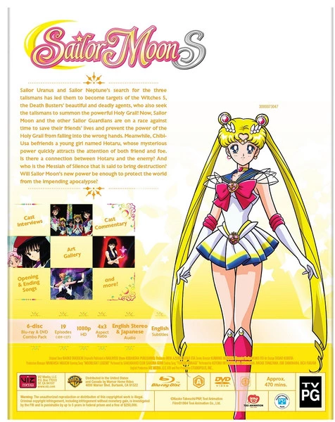 Sailor Uranus and Sailor Neptune’s search for the three talismans has led them to become targets of the Witches 5, the Death Busters’ beautiful and deadly agents, who also seek the talismans to summon the powerful Holy Grail! Now, Sailor Moon and the other Sailor Guardians are on a race against time to save their friends’ lives and prevent the power of the Holy Grail from falling into the wrong hands.