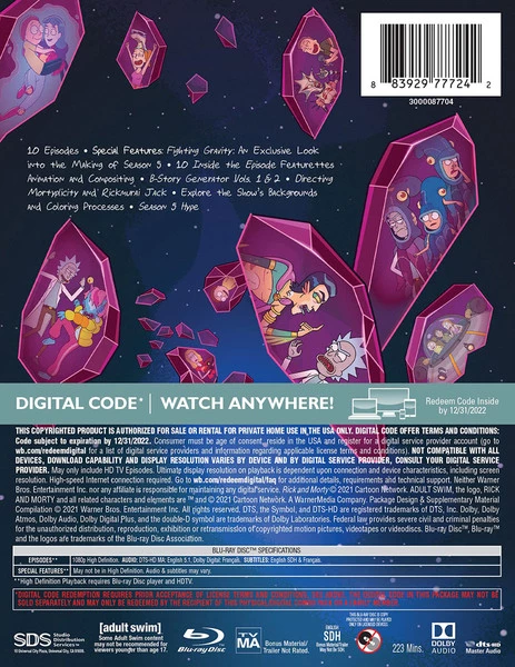 Special Features: Fighting Gravity: An Exclusive Look into the Making of Season 5, 10 Inside the Episode Featurettes Animation and Compositing, B-Story Generator Vols. 1 & 2, Directing Mortyplicity and Rickmurai Jack, Explore the Show’s Backgrounds and Coloring Processes, Season 5 Hype
