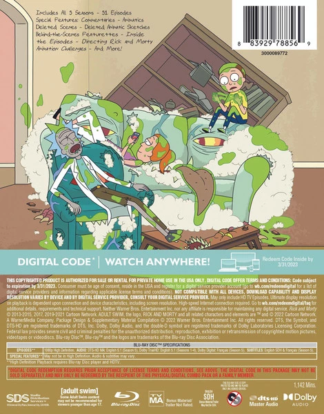 Rick and Morty Seasons 1-5 contains episodes 1-51 of the animated series created by Justin Roiland and Dan Harmon.